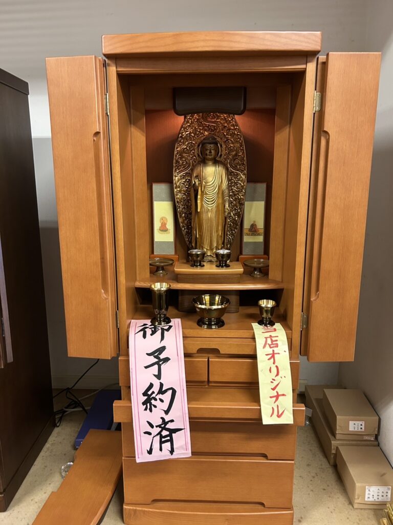 今風の御仏壇には入らないというお客様の悩みにお応えして 内部の段板を調整しました。